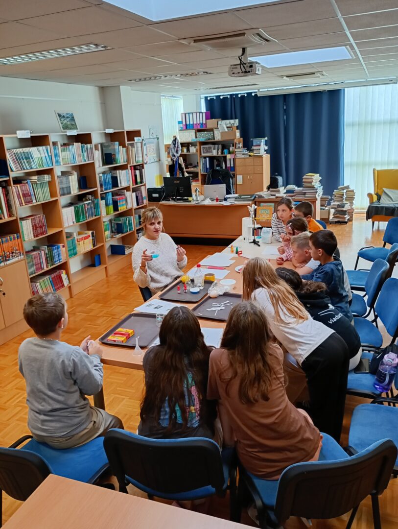Učiteljica prirode, kemije i biologije Željka Ivandija je učenicima razredne nastave pripremila nekoliko zanimljivih pokusa koje su učenici promatrali i diskutirali s učiteljicom o viđenome. Pokazala im je i što se događa s jajetom kada se potopi u ocat i dala im za zadatak doma napraviti taj pokus. Učenici su s oduševljenjem sudjelovali u pokusima i razgovarali s učiteljicom.