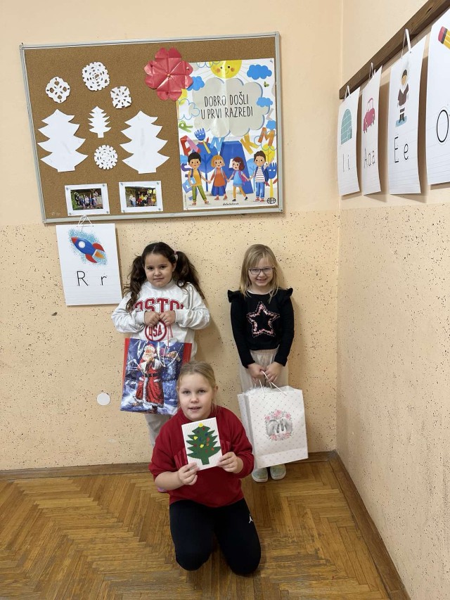 U ovo blagdansko doba, doba darivanja i radosti, učenici 1. razreda prisjetili su se svoje prijateljice Sofyje Berest, koja je trebala s njima polaziti 1. razred, ali se s obitelji prije polaska u školu odselila u drugo mjesto. Prvašići je se i dan danas rado sjete, pa su došli na ideju da joj pošalju poklon kao mali znak pažnje i božićnu čestitku kojom će je sjetiti na zajedničko vrijeme provedeno u vrtiću.