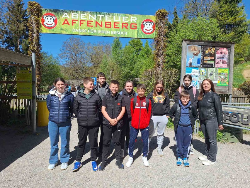 Prva postaja bio je Affenberg Landskron kod Villach. Učenici su ondje promatrali japanske makaki majmune u prirodnom okruženju i kroz stručno vodstvo na njemačkom jeziku saznali zanimljivosti o njihovu životu.